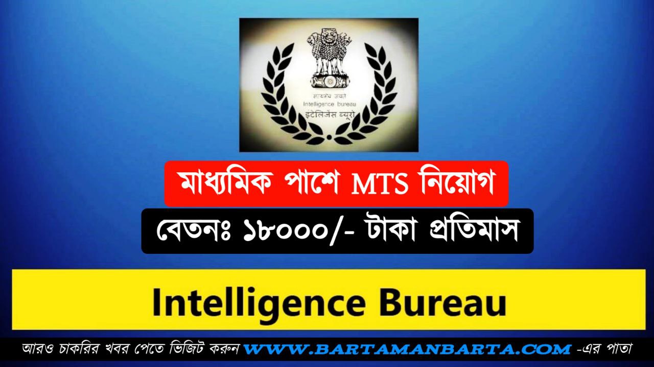 ইন্টালিজেন্স বিউরোতে মাধ্যমিক পাশে নিয়োগ, প্রতিমাসে বেতাব 18,000/- টাকা থেকে 56,900/- টাকা।