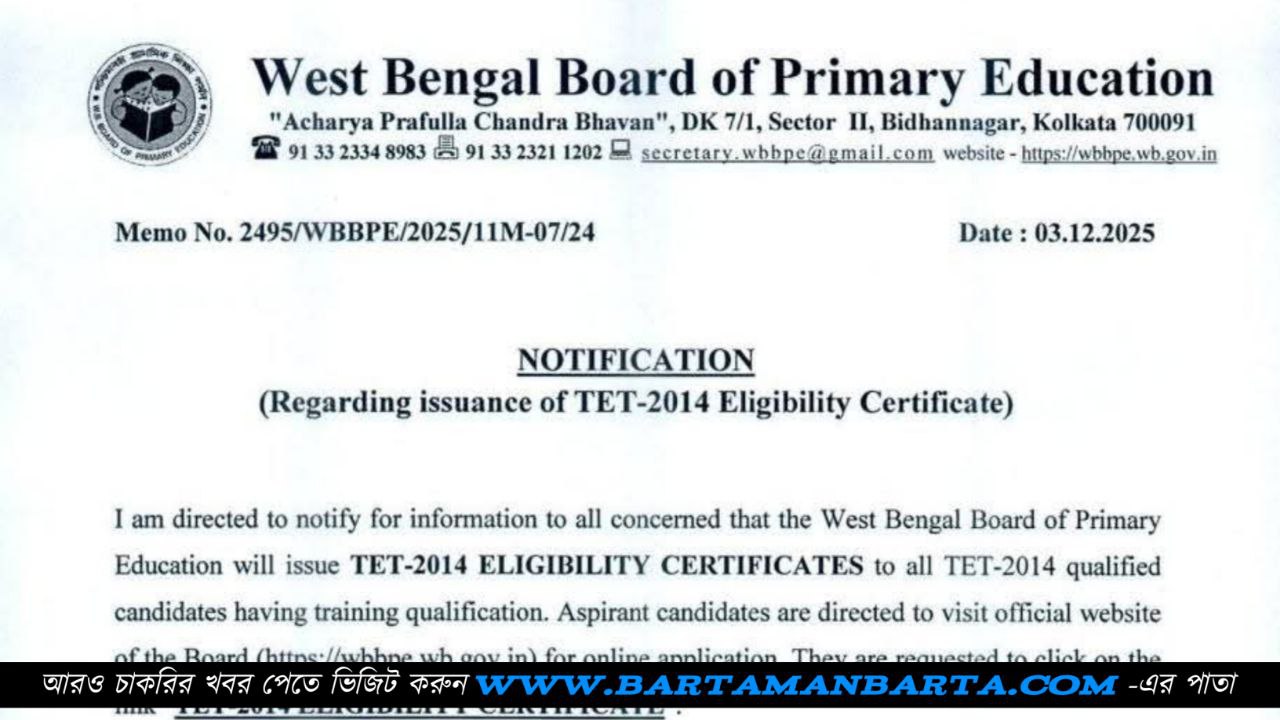 Primary TET 2014 Certificate Download Link | 2014 প্রাইমারি TET পাশ সার্টিফিকেট ডাউনলোড করুন