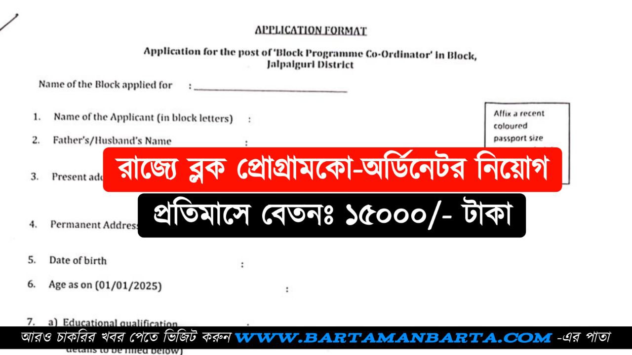 রাজ্যে ব্লক প্রোগ্রাম কো-অর্ডিনেটর নিয়োগ, প্রতিমাসে বেতন 15,000/- টাকা